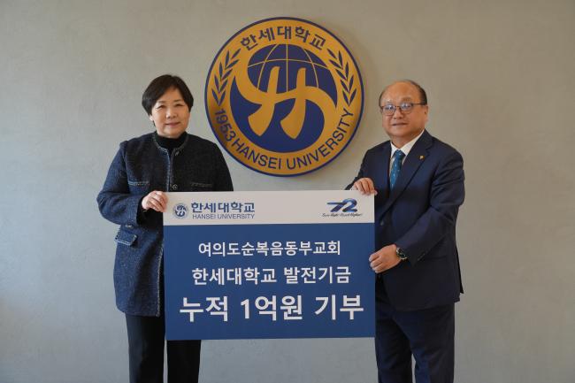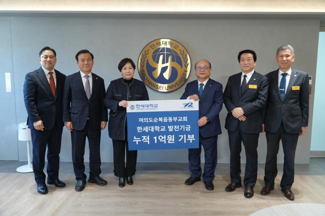 여의도순복음동부교회, 한세대학교에 발전기금 2천3백만원 기부...최근 2년간 누적 기부액 1억원